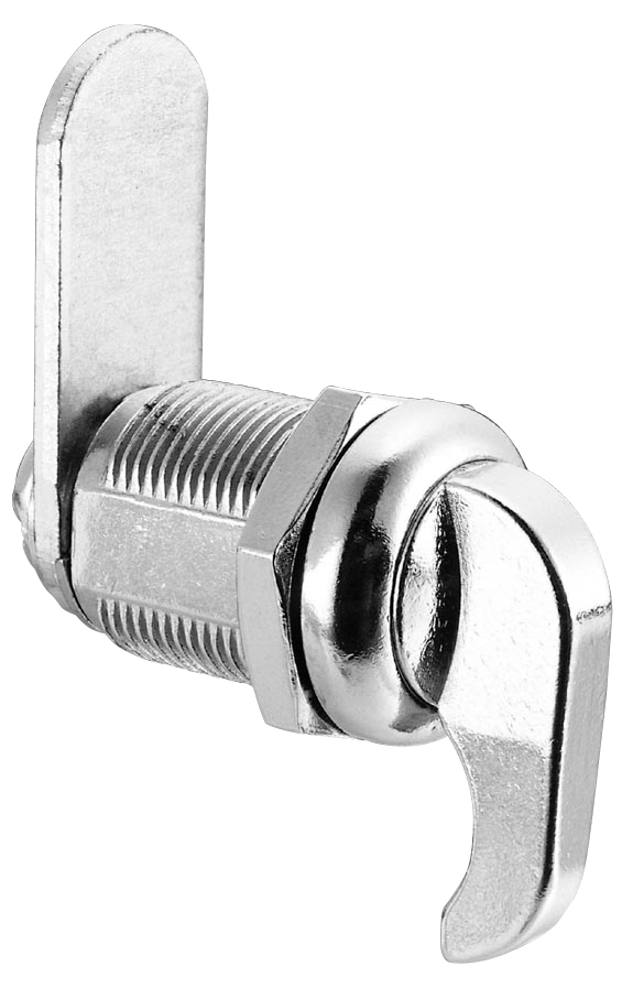 . 锌合金锁壳, 锁心, 亮铬电镀. 有段落感. 无钥匙功能, L型把手式. 4种锁身长度尺寸, 可供客户选择. 舌片尺寸及转向多种, 可供客户选择. 舌片固定方式为螺丝型. 锁头固定方式为六角螺母或插片
